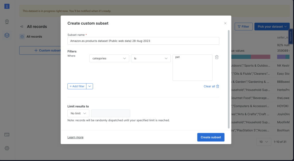 さらに、Bright Dataでは、特にAmazon向けに、すぐに使用できるデータセットを提供しています。つまり、ゼロから始める必要はなく、膨大な量のAmazonデータに直接アクセスすることができるのです。