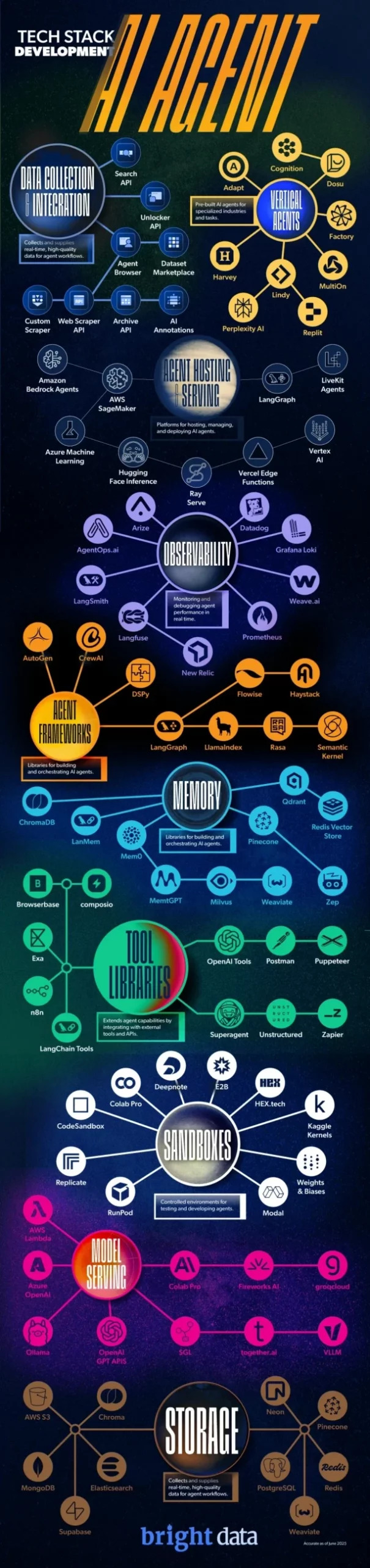 Bright Dataでは、様々な業界のAIチームと協業していますが、一つ明らかなことがあります。それは、あらゆるエージェントはデータから始まるということです。本記事では、最も重要な要素である「データ収集と統合」から始め、AIエージェント技術スタックの中核となる層を順を追って解説します。